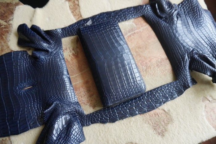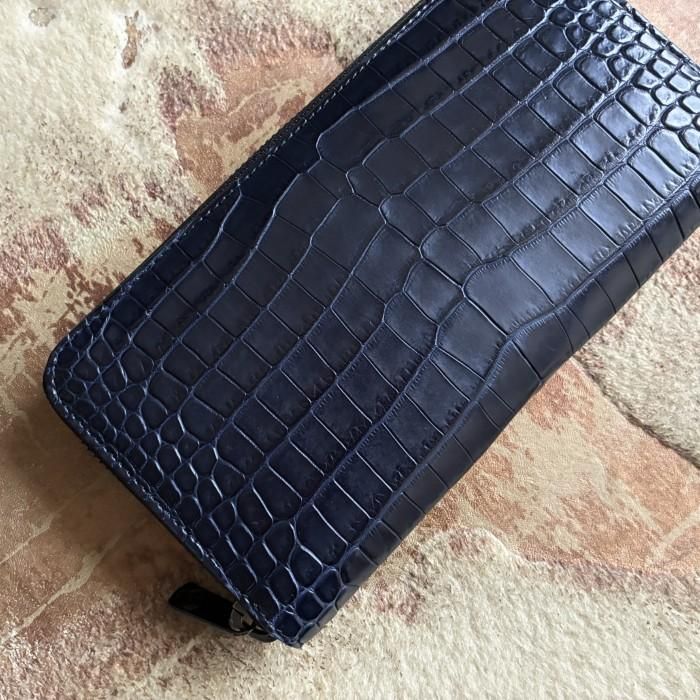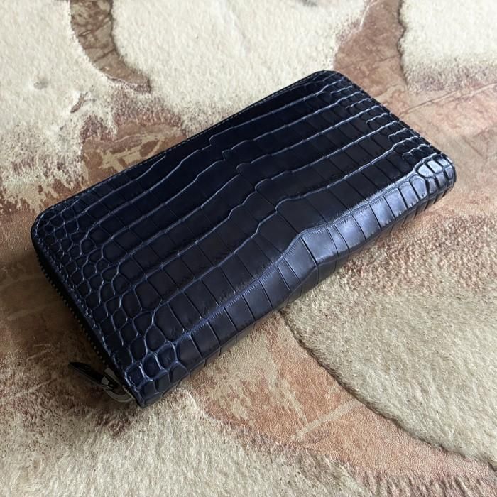 クロコダイルの中でも最も希少価値の高いポロサス。その中でも、腹部位の一番贅沢なカットを用い、一枚から一つだけを裁断して仕立てた長財布です。