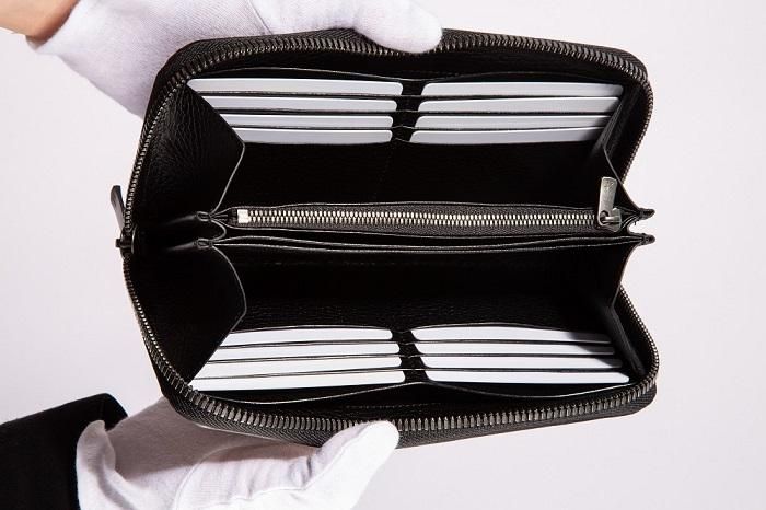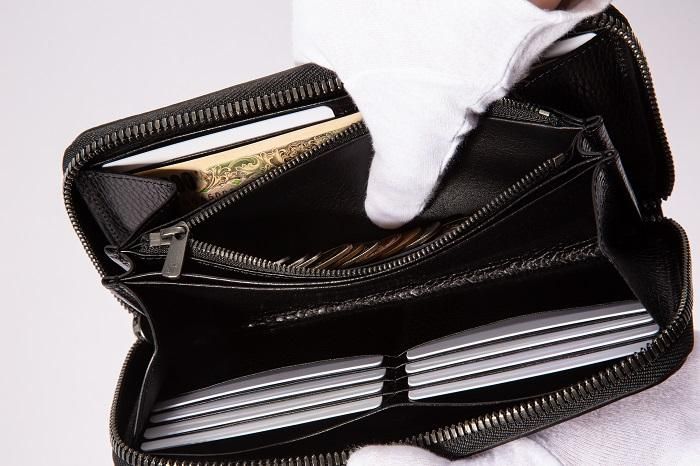 手作業でこの薄さと容量、繊細なつくりはまさに技術の粋。国内でも最高レベルを持った職人といっても過言ではありません。小銭入れの底が高くなっており取り出しが非常に楽な仕様になっています。通帳も余裕をもって収納が可能です。
