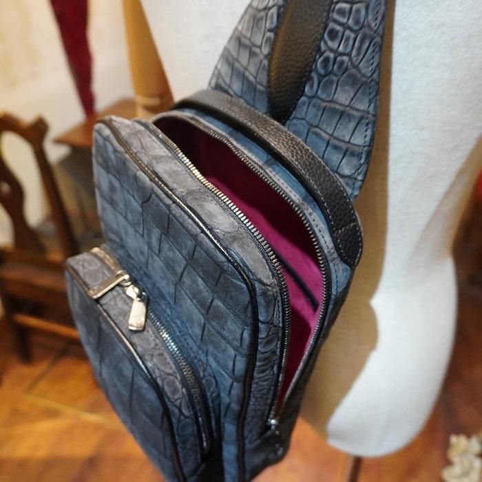 「ヌバッククロコダイル一点物ボディーバッグ」