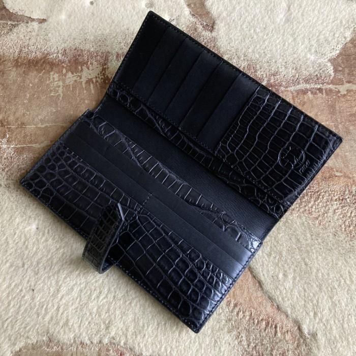 ナイルクロコダイル ブラック 薄型 二つ折り長財布(小銭入れ有)