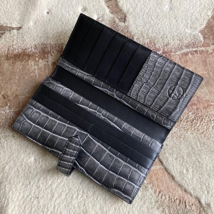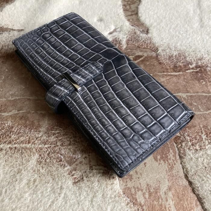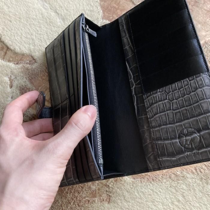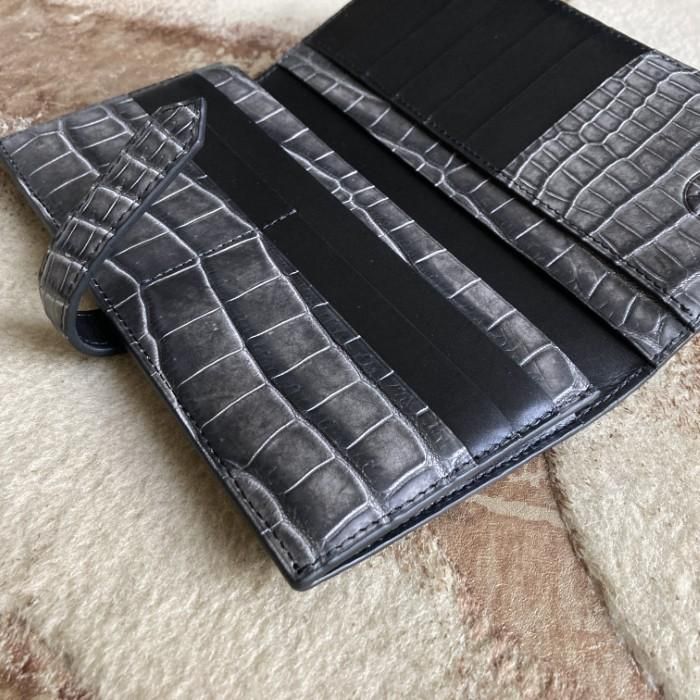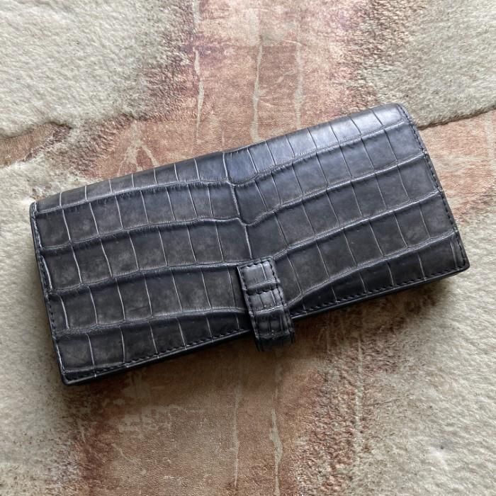墨染ナイルクロコダイル 薄型 二つ折り長財布(小銭入れ有)