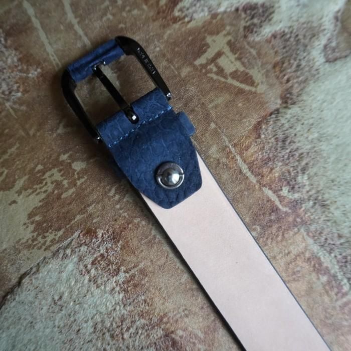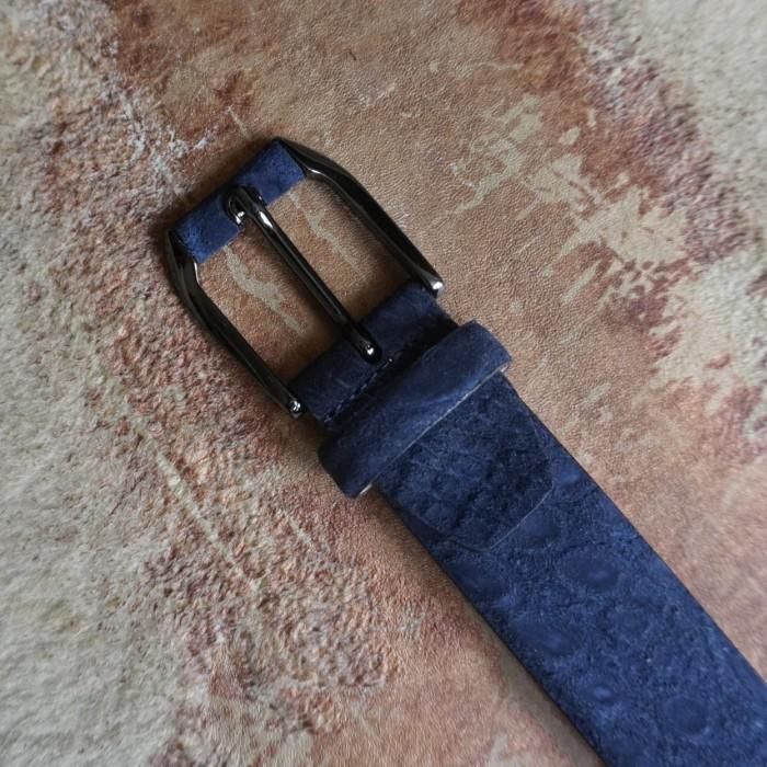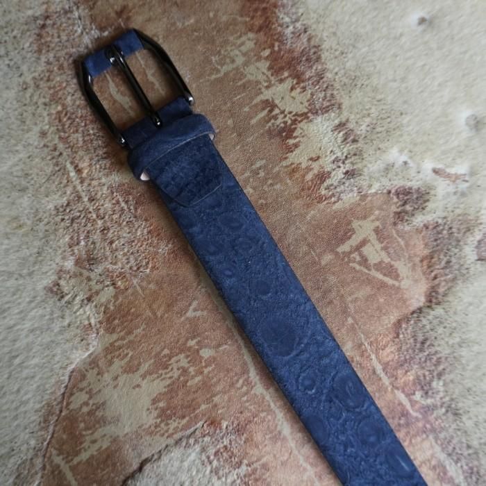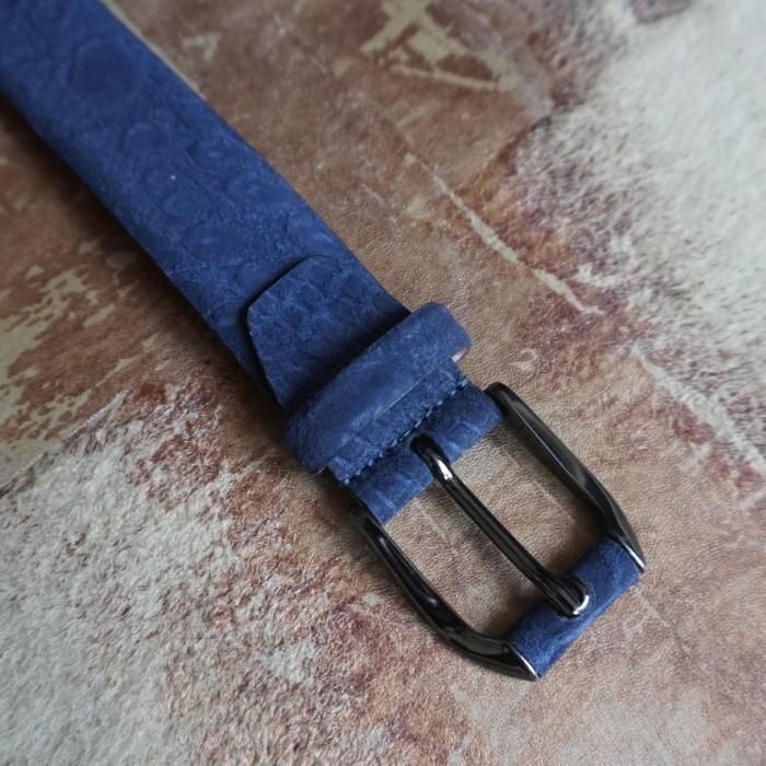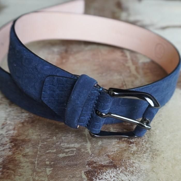 腹ワニ革 レザーベルト 【ヌバック青】3.5cm幅