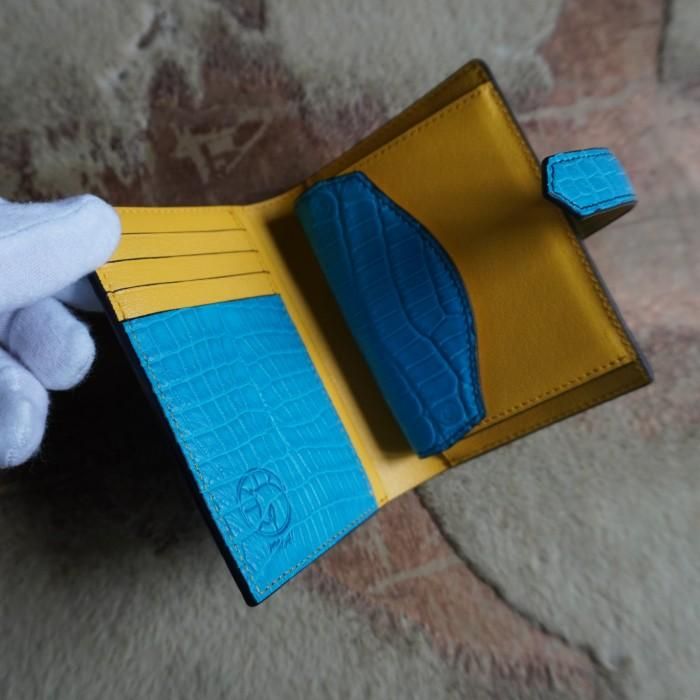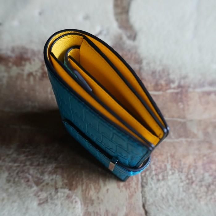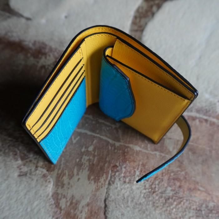 【2点限定・特別仕様】ターコイズブルー×イエロー 二つ折りコンパクト財布