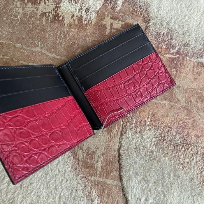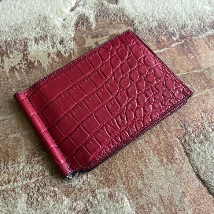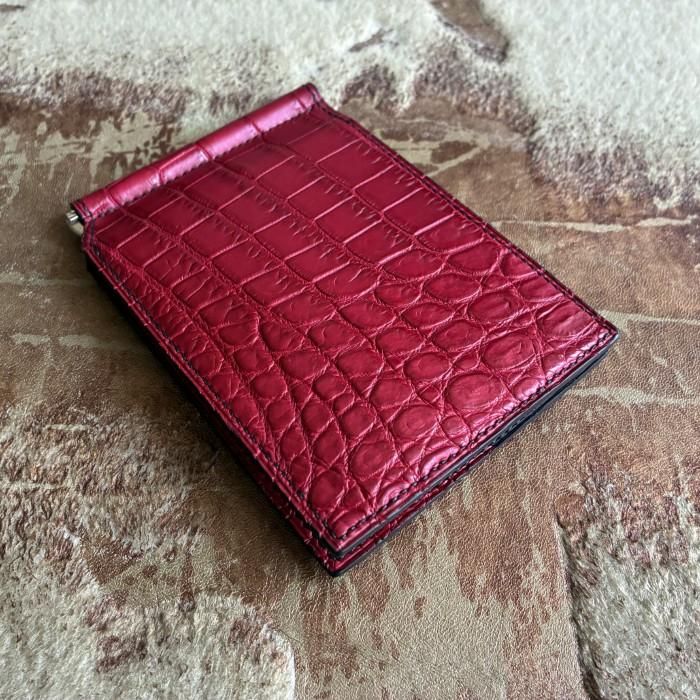 クロコダイルの最も高級な腹部位を使用し表裏ともにクロコダイルの竹フと丸フの鱗模様が楽しめる一点物です。