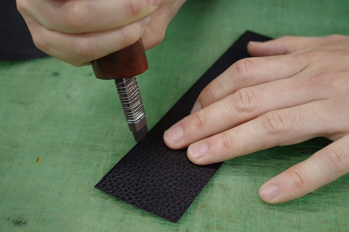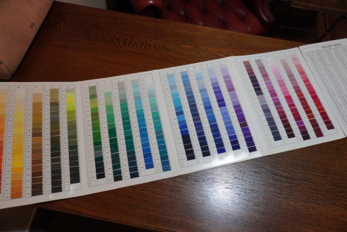 非常に手間のかかる染色方法ですが革の芯まで染料が浸透し奥行きを感じる重厚な色合いが実現。