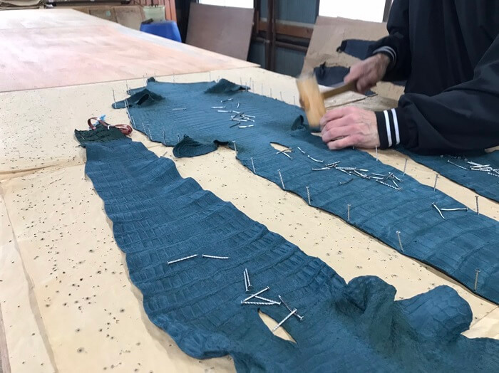 上面を削り、表面を毛羽立たせることで独特の表情を出すヌバッククロコダイル。