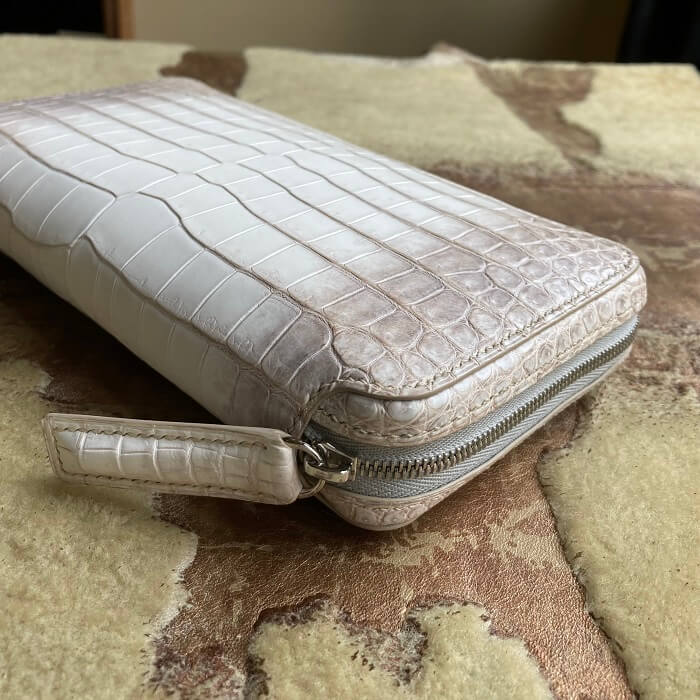 世にこれ以上の技術で作られたクロコダイルラウンドファスナー型長財布は存在するだろうか。作製した私自身が感動するクロコダイルラウンドファスナー長財布。長財布のクオリティーで本物を求める方々にメゾンブランドのクロコダイル長財布を超えてる、とありがたい評価を頂くようになりました。勿論その自信をもってこのクロコダイルラウンドファスナー長財布は提供させて頂いています。