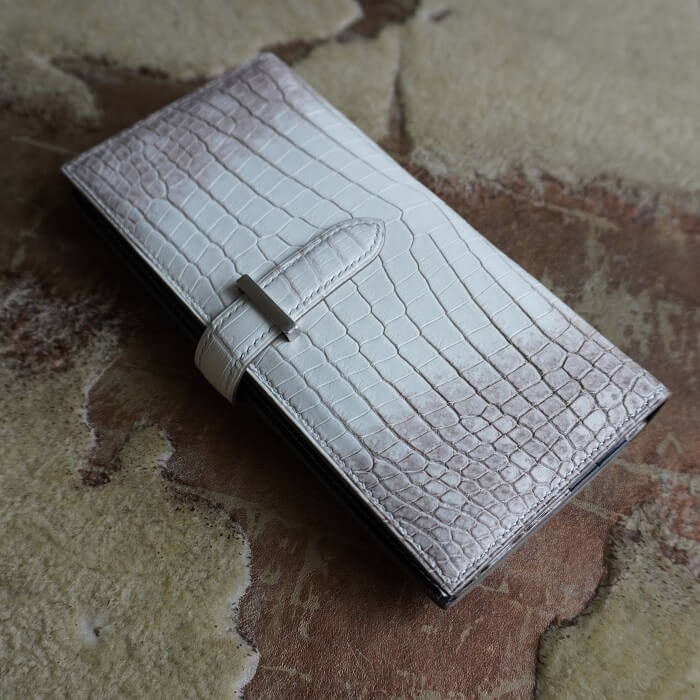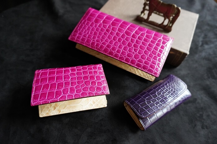 薄く上品なクロコダイル二つ折り財布や名刺入れも