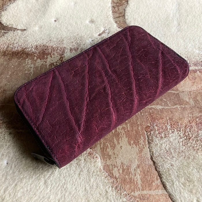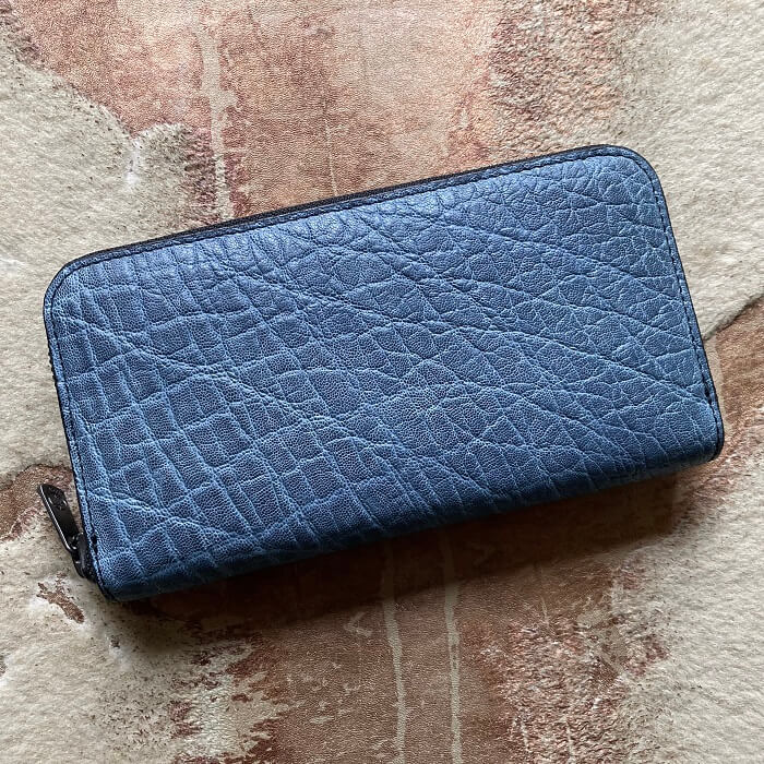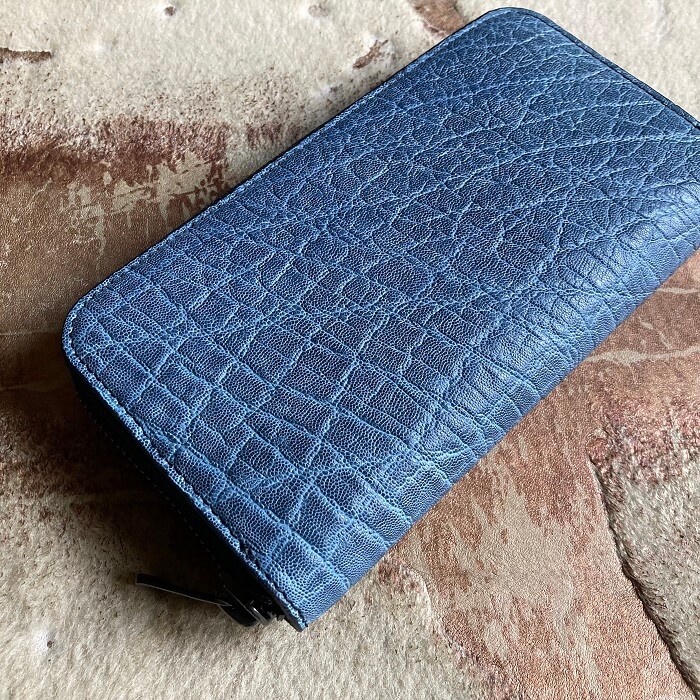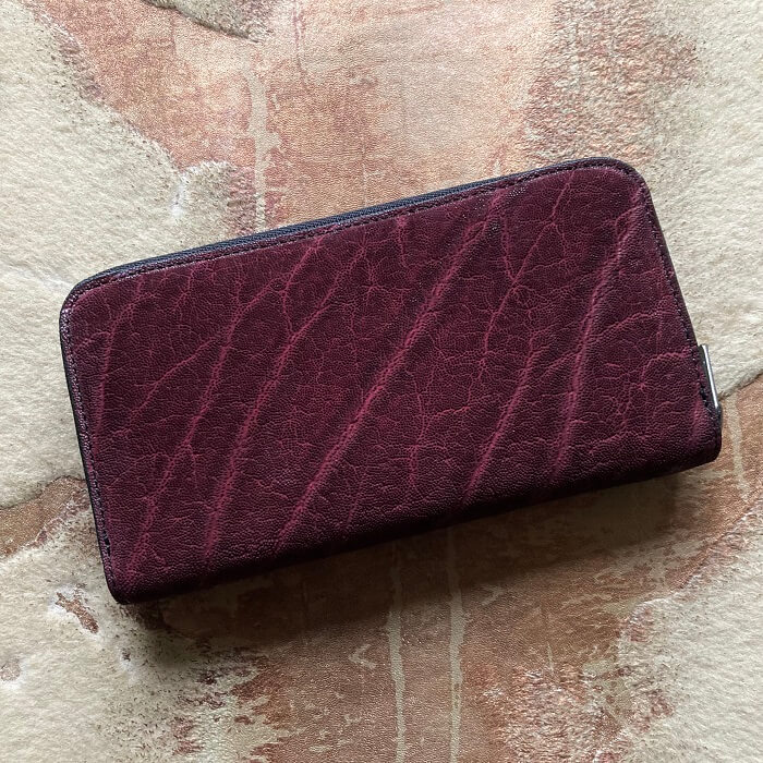 天然素材と特殊な染色により個体により表情や色むらは異なり、まさに一点物の長財布です。