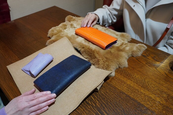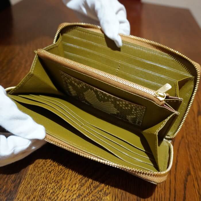どんな風に出来上がるのかドキドキでしたが期待以上の仕立て力と表現力と完成度です。爬虫類の表情をそれぞれうまく表現して、美しく輝かせる、財布を仕立てる技術力一つでこんなに表情が違ってくるのか。。とにかく出来栄えが素晴らしい職人の仕立て力です。