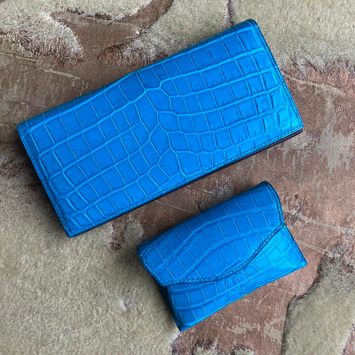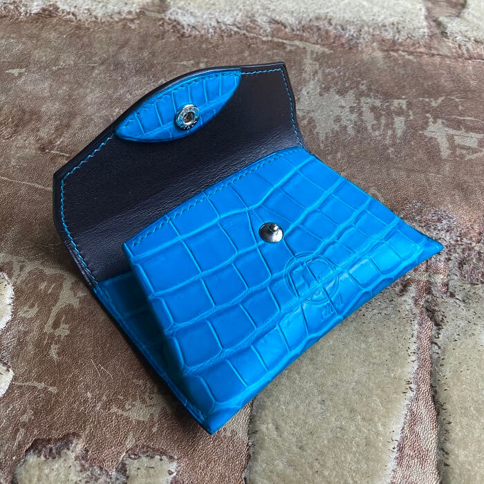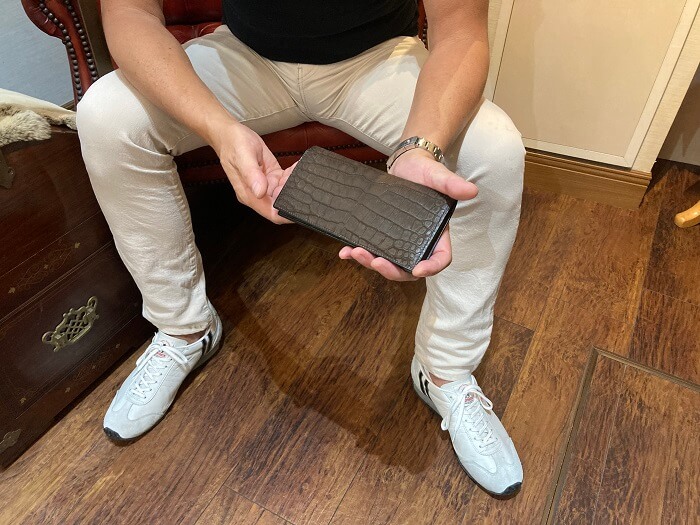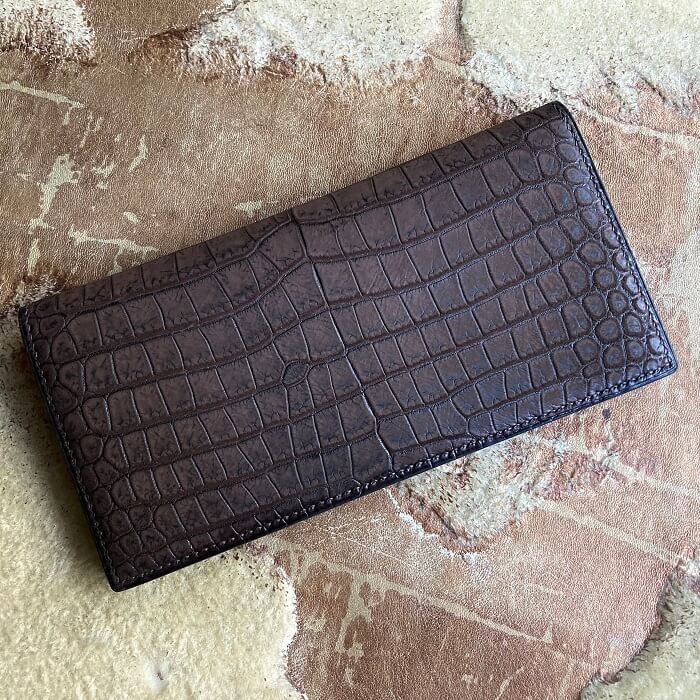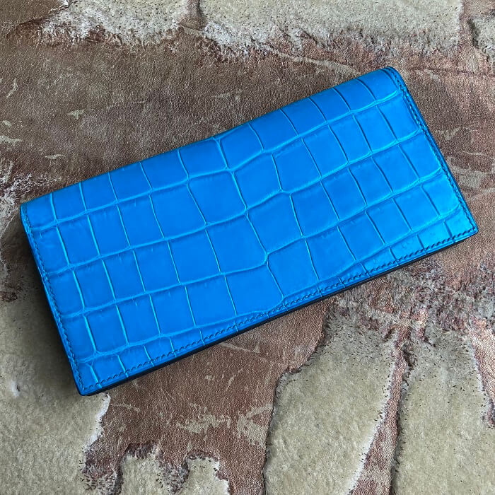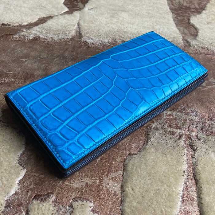 お客様に選ん頂いたトップクオリティー1級のポロサスクロコダイルのグリーンを使用し、手縫い職人が仕立て上げた一点物。