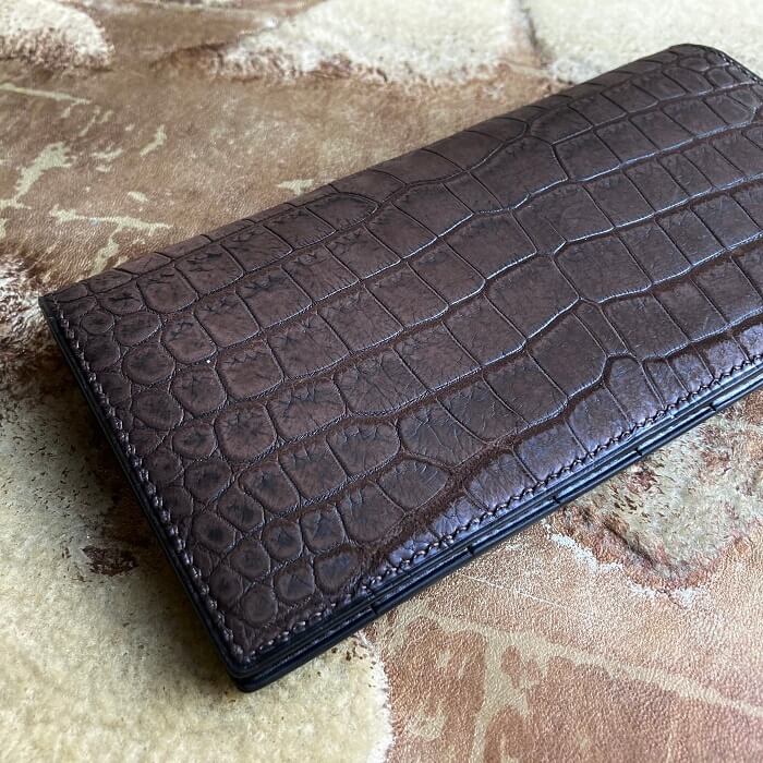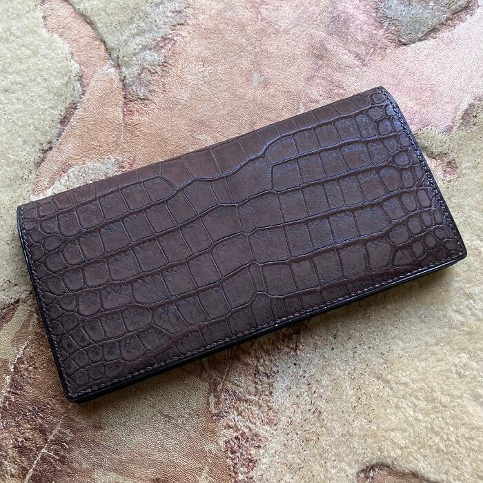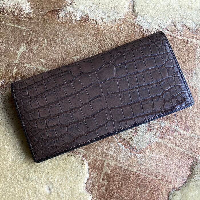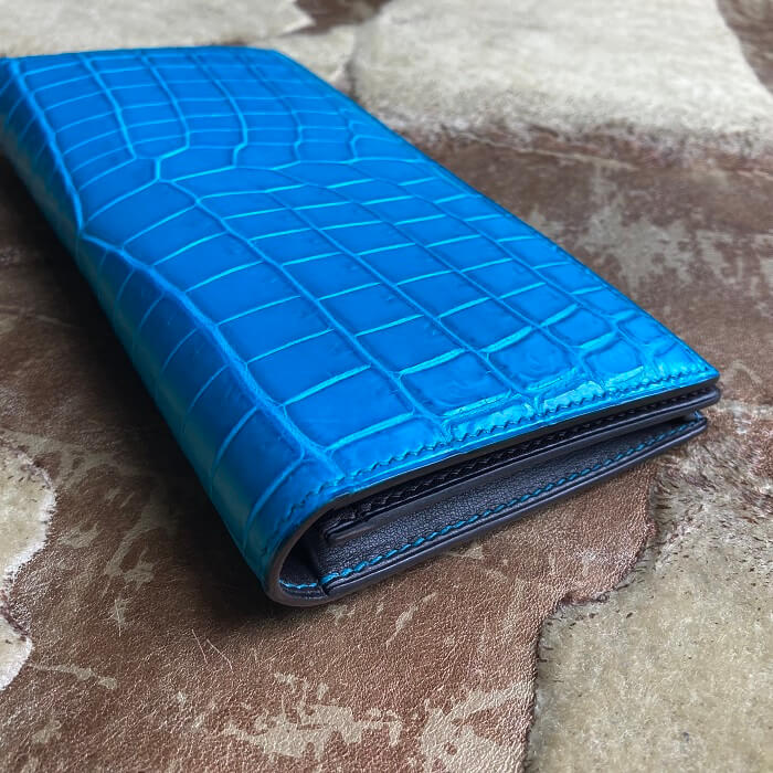 ポロサスクロコダイル(グリーン)×18金を使用した100万円収納二つ折り長財布が完成しました。