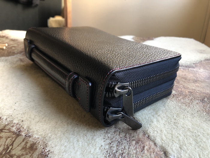 ラウンド型の中でも男性には人気のダブルファスナーの長財布、ダブルファスナーの長財布をオーダーメイドするのは高度な技術が必要ですが、今回も職人ジャックが見事に仕立て上げてくれました。オーナー様は多忙な若い経営者さん。仕事とプライベートをそれぞれファスナーで区切って使ってる長財布を改善してオーダーメイドしたいとのご要望でダブルファスナーの長財布をオーダーメイドすることになりました。