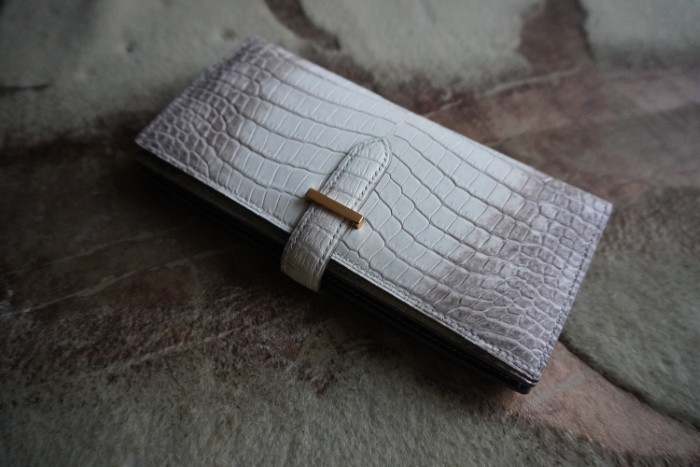 すべてのクオリティーに拘った馬車道今井の自信作のクロコダイルの二つ折り財布です。