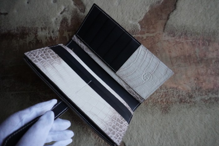 国内で一番のクロコダイル商品を仕立てている自信があります。是非一度馬車道の店舗に見に来てご自身の目で見て革を触ってご確認ください。