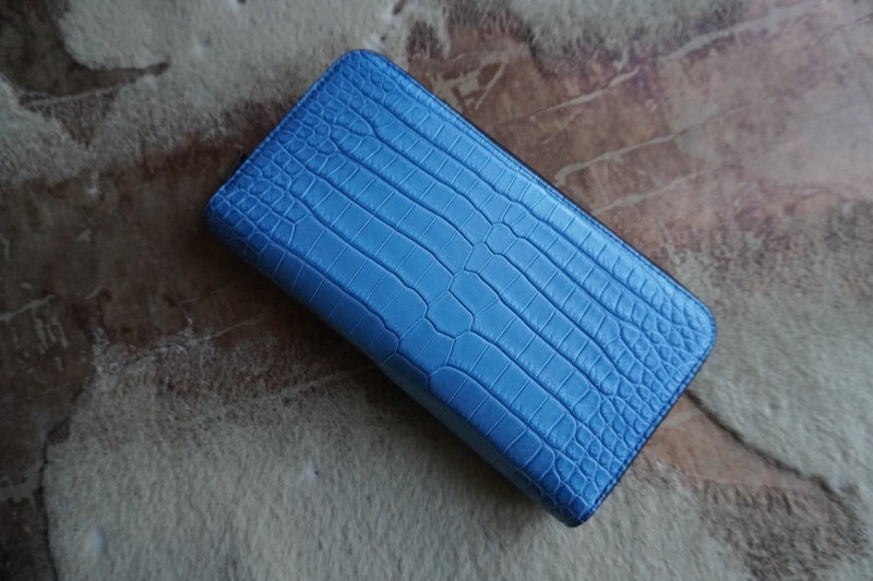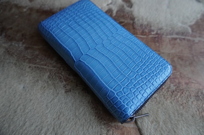 藍染はなあさぎ ポロサス/スモールクロコダイル定番ラウンドファスナー長財布 以前グリーンのクロコダイルで作成した定番ラウンドファスナー長財布をご購入頂き、使い勝手や仕様をとても気に入って頂いているお客様からオーダーを頂き作成しました。