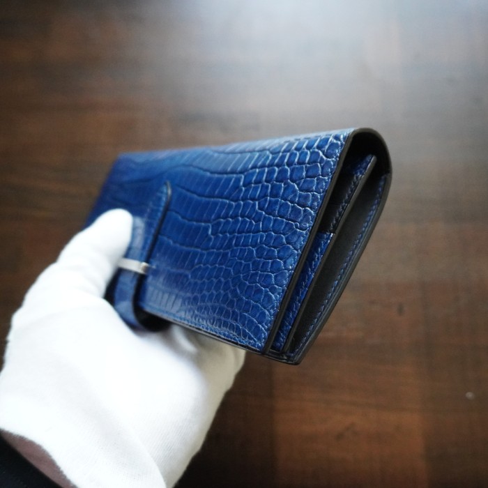 藍染ポロサス×プラチナ金具100万円収納二つ折り長財布
