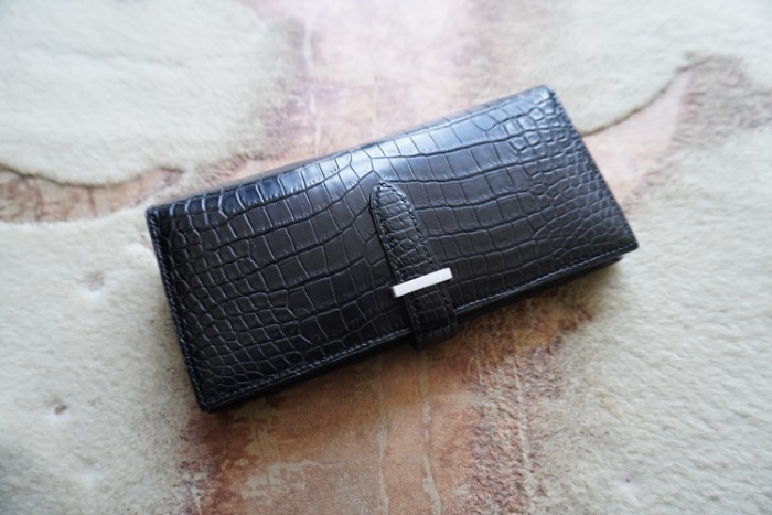 すべてのクオリティーに拘った馬車道今井の自信作のクロコダイルの二つ折り財布です。