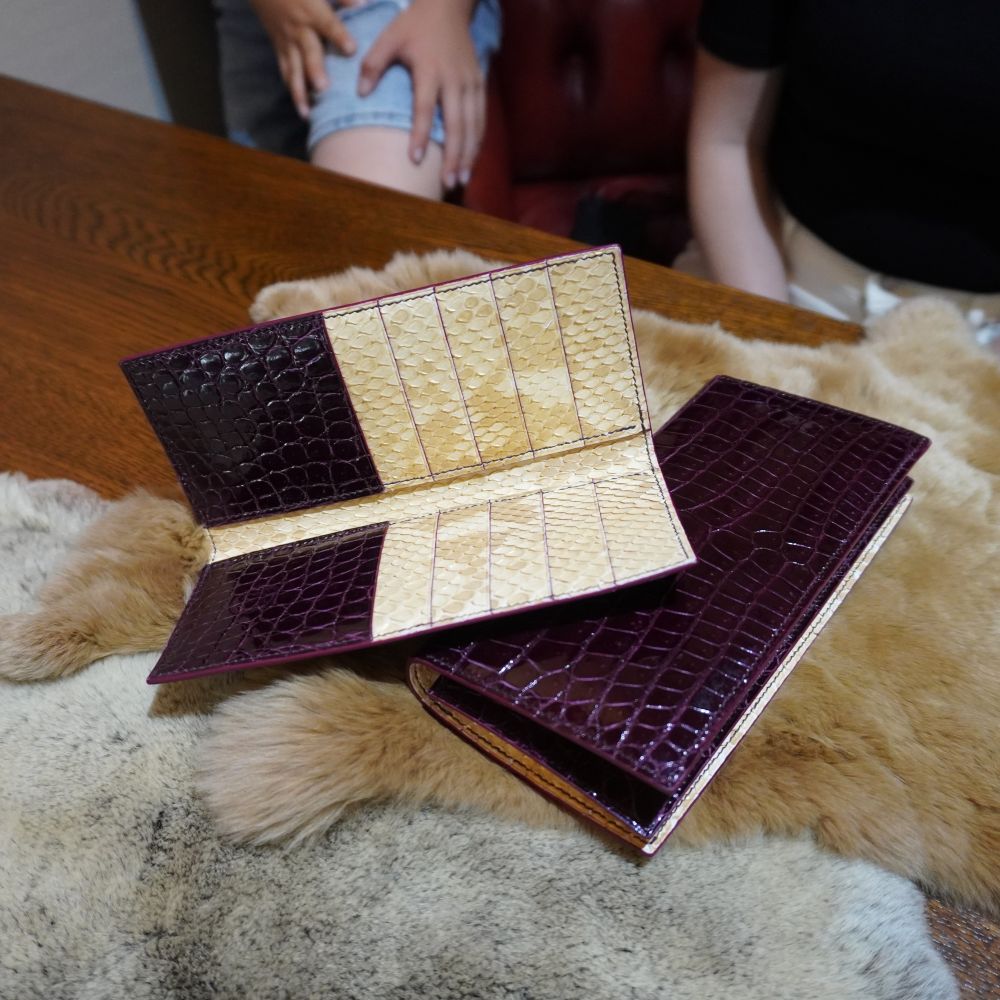 財布の内側までオールヘビそれもゴールド、女性経営者様ならではの華やかで豪華な組み合わせです。 そして業績アップも間違いなさそうです。