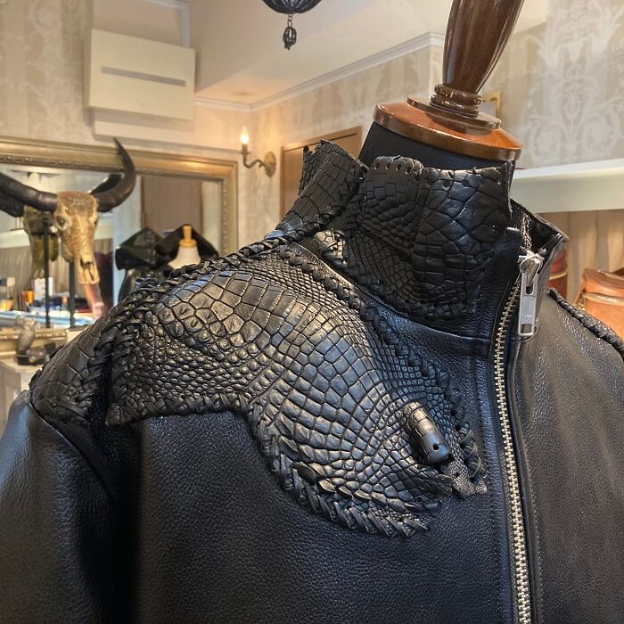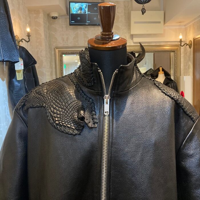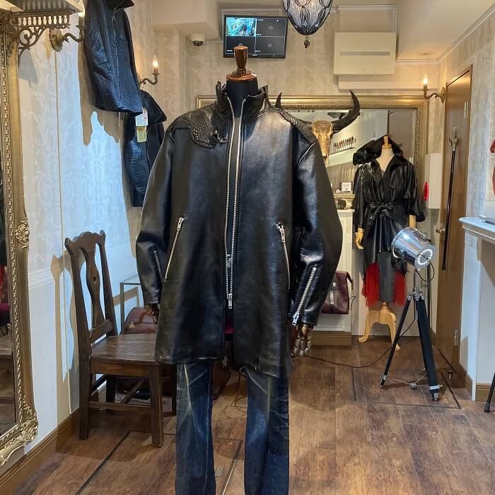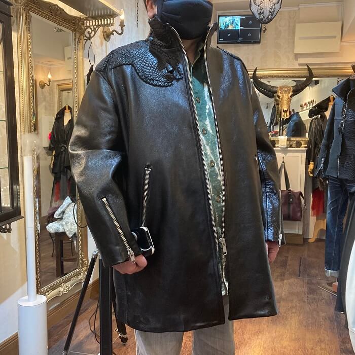 以前からワニを背中に背負ったようなジャケットを作って欲しいっとおっしゃってたマコさん。手に入れた背ワニでカッコいいジャケットの出来上がりです。背ワニをどんなふうな形にジャケットに付けるか、そのまま使うか、サンプルを作製しながら、一緒に考えながら作り上げました。フルオーダーならではの面白いクロコダイルのジャケットが完成しました。