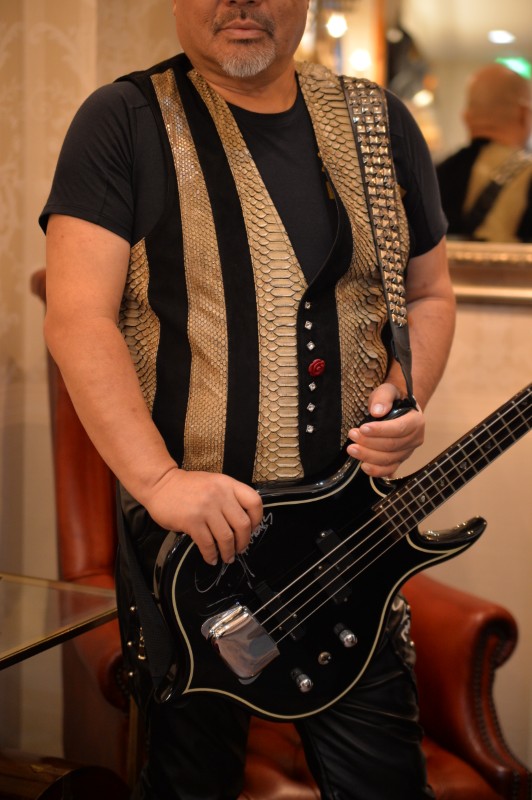 バックスタイルはシンプルにヘビの幅が一番大きく状態の良いところを使用しました。この日は、他の撮影もあってプロの方に撮って頂き撮影会です。