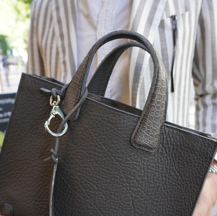 小ぶりなので女性ぽくならないように持ち手を工夫したり、内側の仕様や 形も何度も打ち合わせしました。