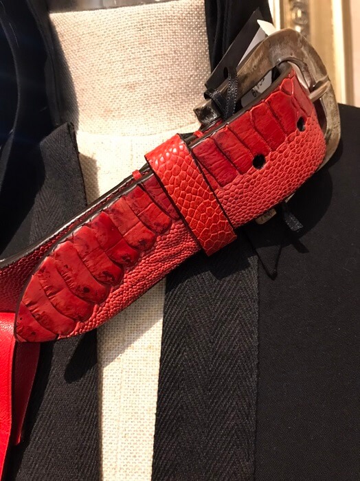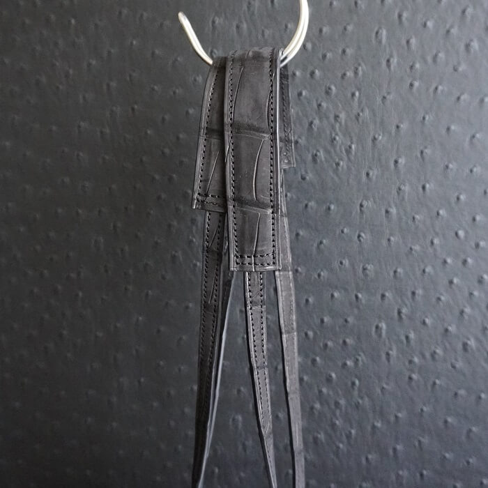 革屋さんに足を運び色々な背ワニを見せて頂き、選んだのはオーナー様に負けない、いかつい背ワニ。