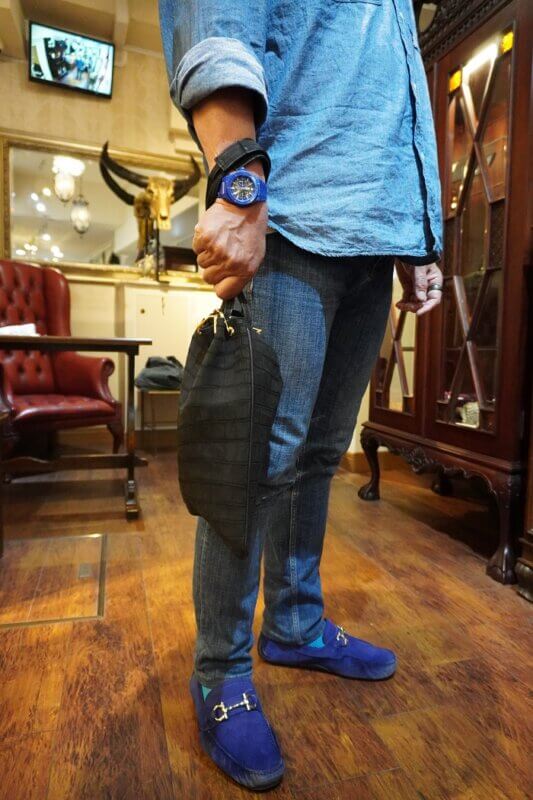 また両サイドや細部にまでクロコダイルを余すところなく贅沢に使用しています。