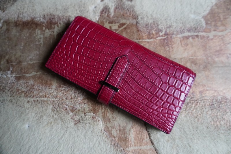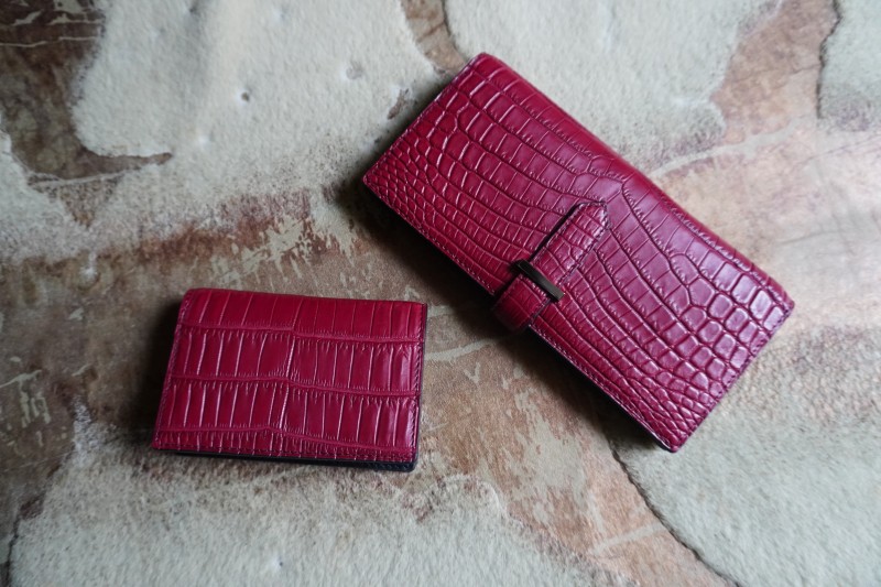 ちょい持ちバックをきっかけに、静岡から観光も兼ねて何度もご来店頂きながら、作製させて頂いた魅力的なワインレッドのクロコダイル長財布。 ワイン色は大人の色気のあるお洒落な色ですね。 お洒落上級者さんが持つ色に思います。